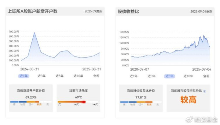 还有诸如A股新增开户数、股债收益差、偏股基金发行份额等等指标,都显示目前较历次牛市高点或许还有距离。